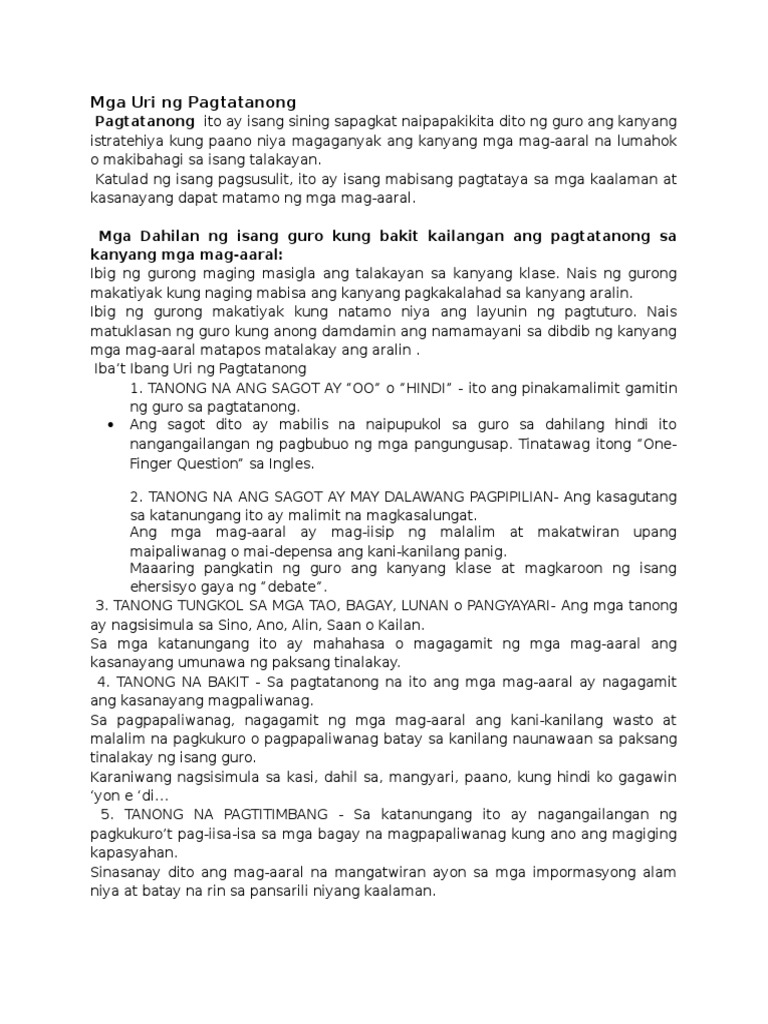 Ang mga unang tanong na iniisip natin ay magsisimula sa Ano ito ang mga pangunahing kaalaman sa pagtatanong na nagpapalabas ng ating pag-usisa tungkol sa isang paksa. Ang mga panghalip na pananong sa araling ito ay ang sumusunod. Ang malaman kung paano maghanda gumawa magtanong at sumagot ng mga tanong ay malaking tulong sa pag-aaral at pagtuturo ng ebanghelyo.