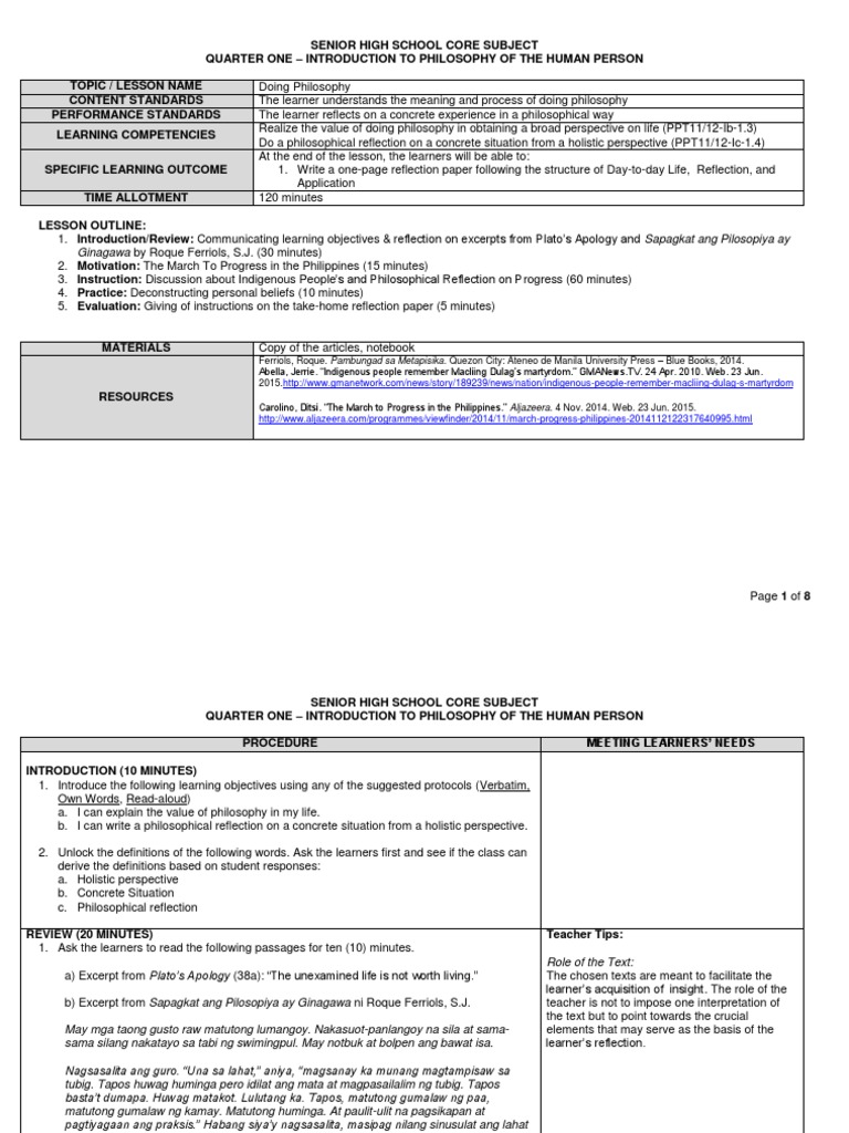 View G12-Philo - WS2-The Nature of Philosophical Reflectiondocx from PHILO 225 at University of the Philippines Diliman. Pilosopiya ng Tao I Michael Ner E. Sa pagtataya ni Demeterio ang Tomasinong Pilipino tingnan ang ilustrasyon sa itaas ang pinakauna sa mga kalipunan.
