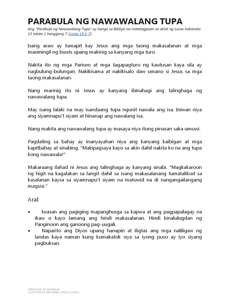Lahat ng tao ay may iba iba na kahulugan. The 10 Commandments of God. Anong laking gulat niya nang makitang ang kanyang bitag na nakasabit sa puno ay nakahuli ng isang munting ibon samantalang ang bitag ng kanyang asawang nasa lupa sa tabi ng ugat ng isang malaking puno.